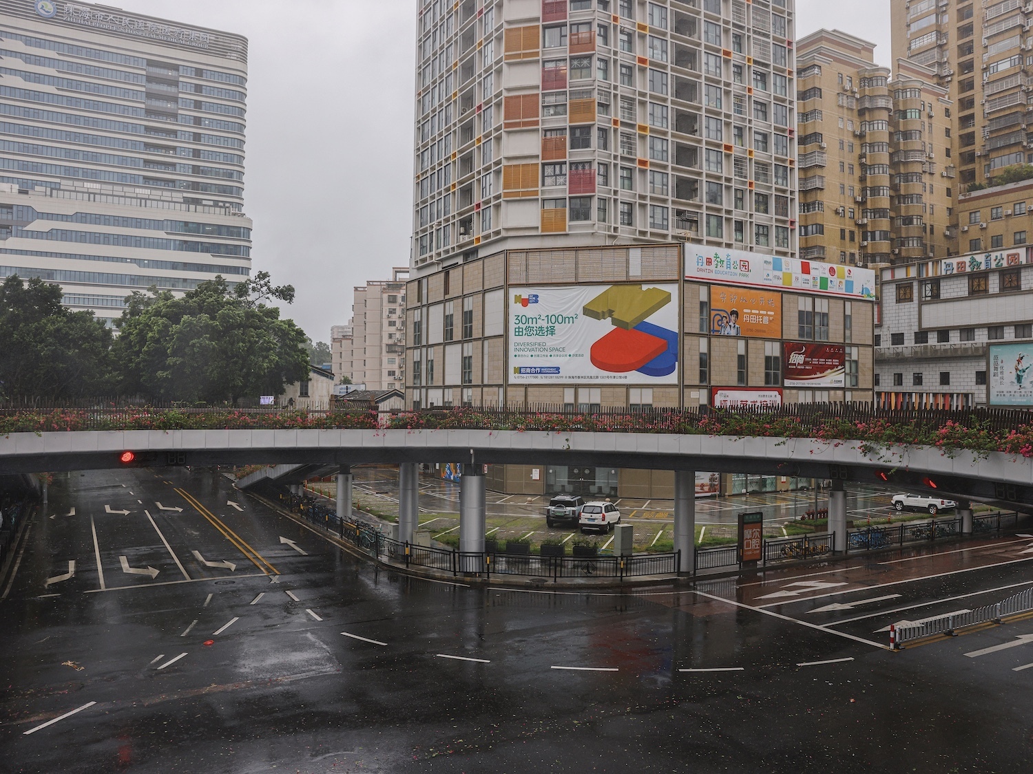 台风“桦加沙”过境,珠海进入10级风圈,街上空无一人。